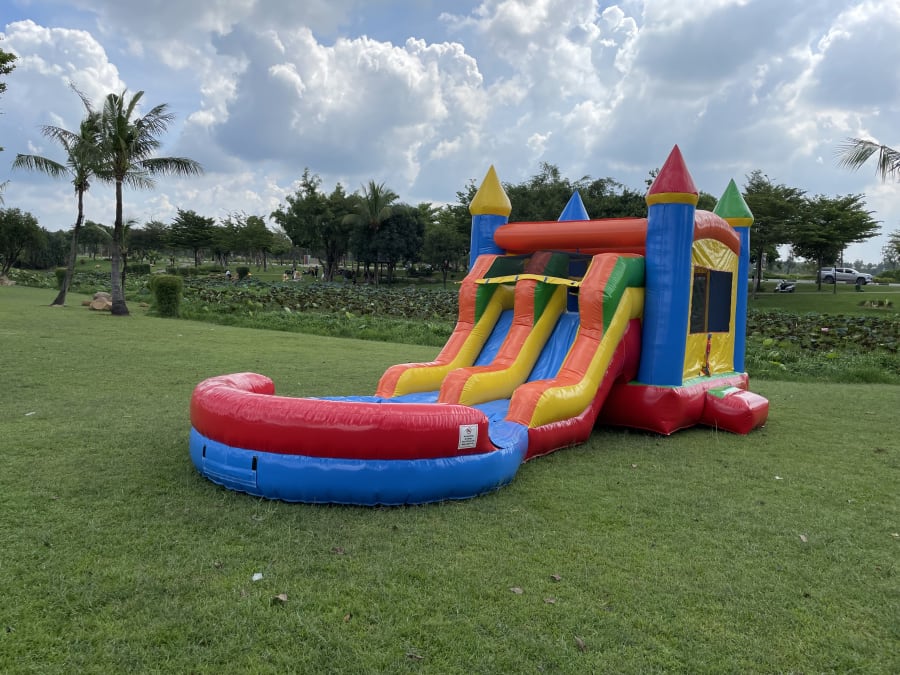 This Dual Lane Combo is made of 100 percent 15 ounce vinyl. 13 feet H by 29 feet long by 13 foot W