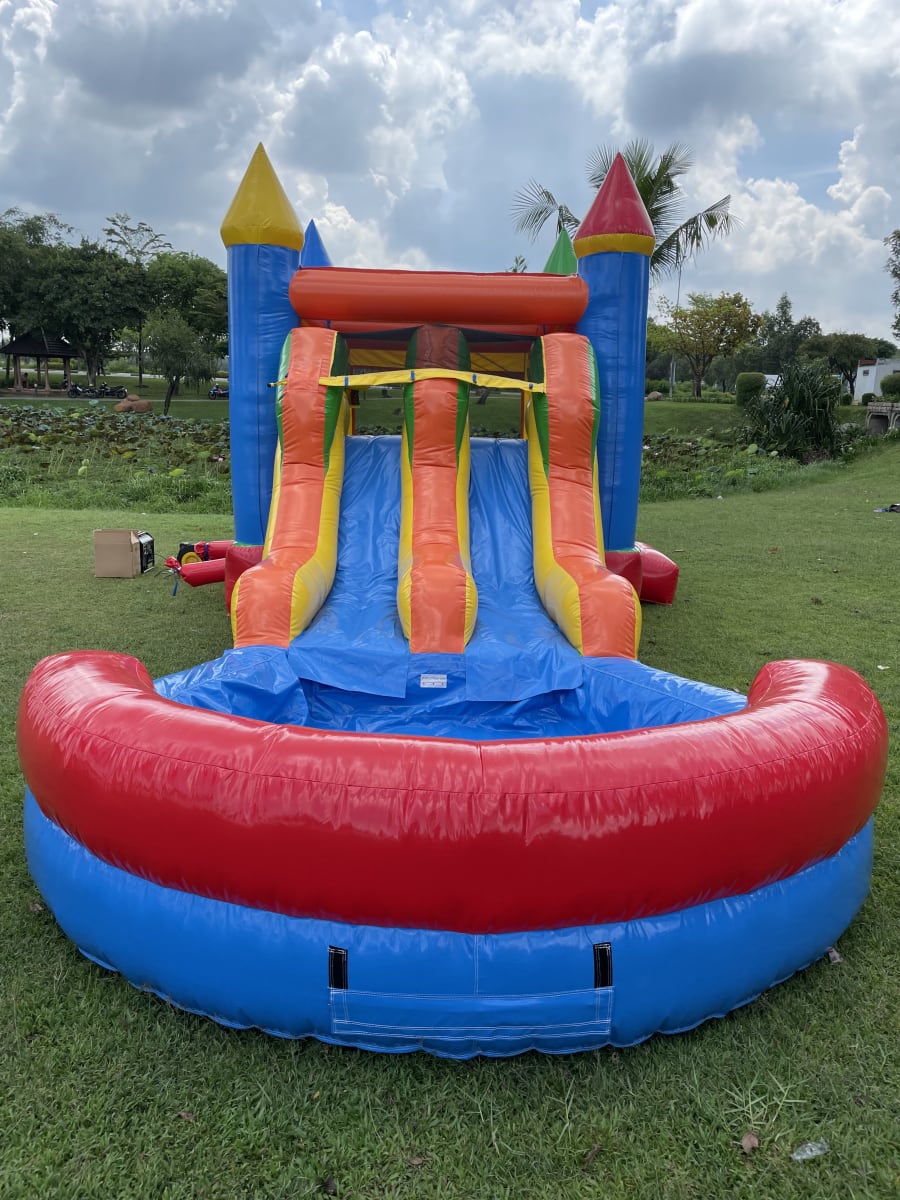 Includes Inflatable Water Slide, Slippery Slide Cover, Removable Climbing Ramp Cover, Slide Soaker Hose, Storage Bag for the Slide, Repair Patches.