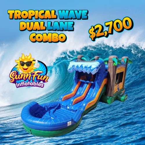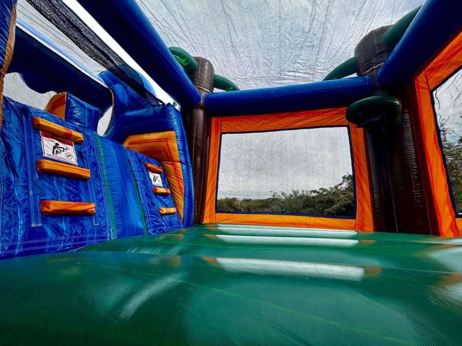 This Dual Lane Combo is made of 100 percent 15 ounce vinyl. 14 feet H by 32 feet long by 13 foot W
