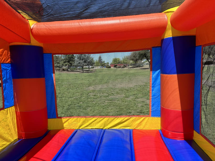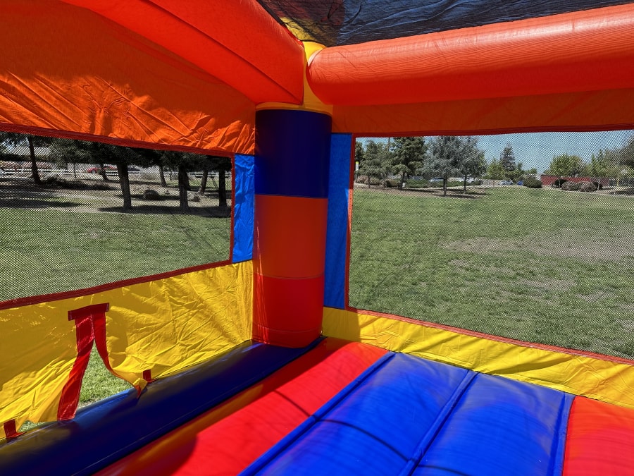All of our Bounce Houses are made of 100% PVC 15 ounce vinyl with reinforced belting and stitching for all key stress points.