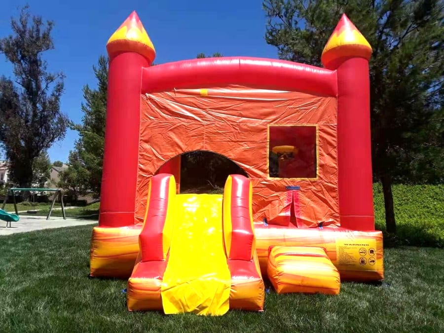 All of our Medium Duty wet/dry combos are suitable for rental use. These are made very well with reinforced stitching for all stress points. All of the load bearing portion have 15 ounce premium vinyl, this includes the jumping mattress, slide and entrance pad. The non load bearing portion is made of 13 ounce vinyl.