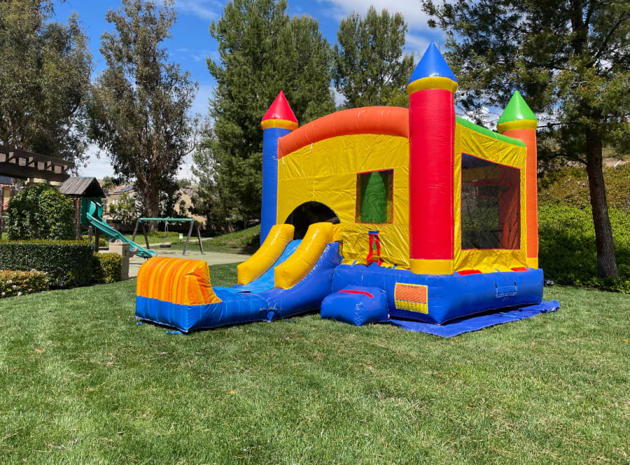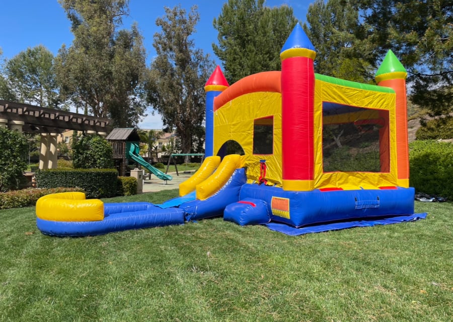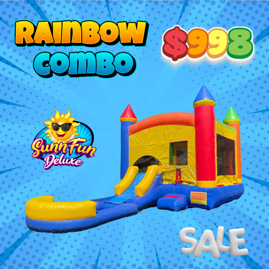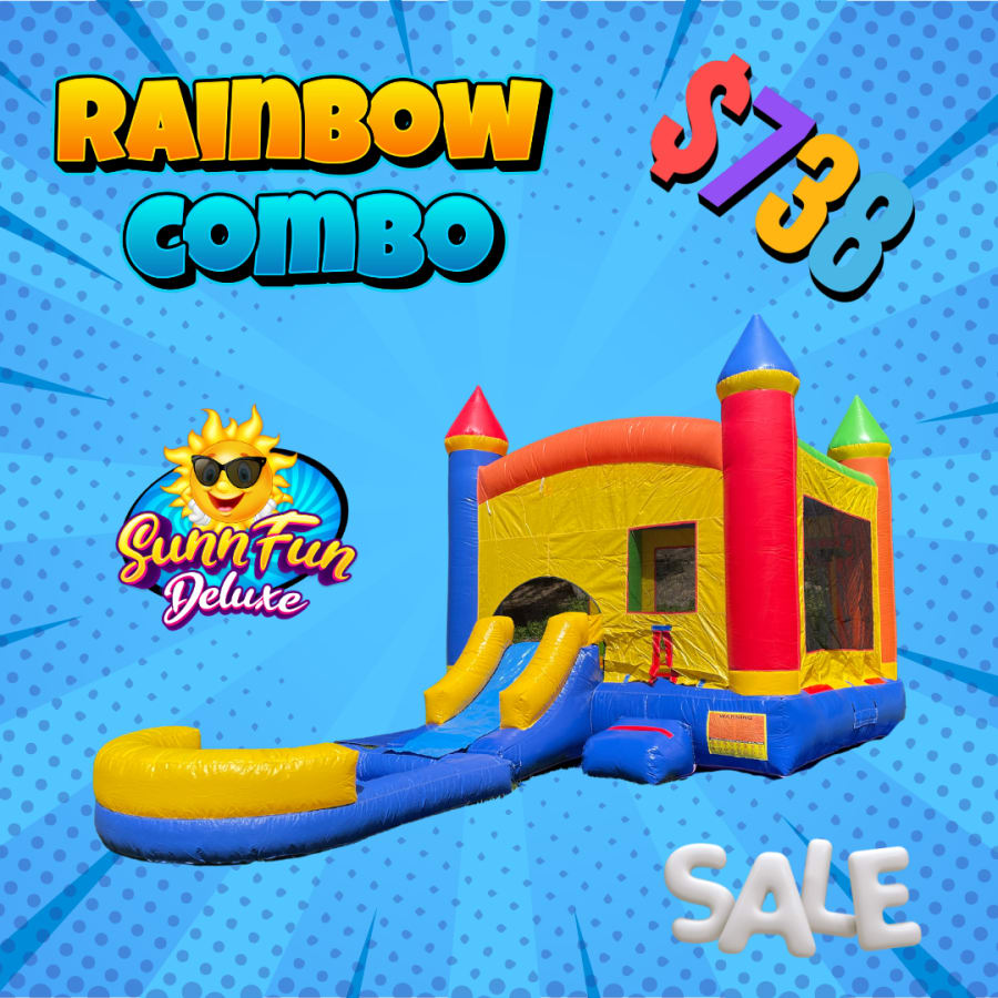 All of our Medium Duty wet/dry combos are suitable for rental use. These are made very well with reinforced stitching for all stress points. All of the load bearing portion have 15 ounce premium vinyl, this includes the jumping mattress, slide and entrance pad. The non load bearing portion is made of 10 ounce vinyl.
