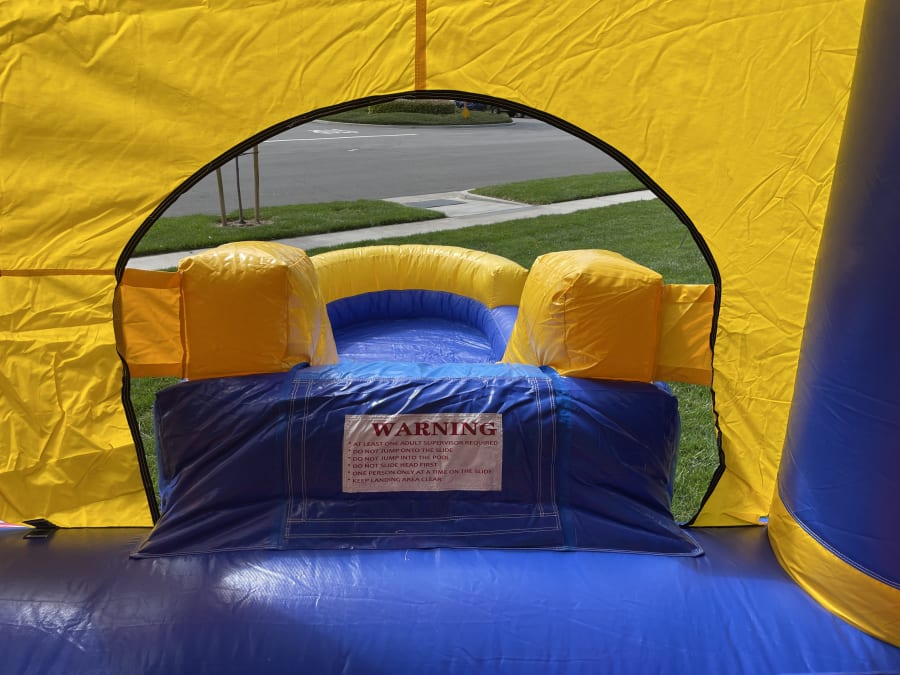 Always use ground stakes and the included tie down straps to secure the waterslide to the ground. Additional securing methods such as sandbags may be required depending on the set up area.