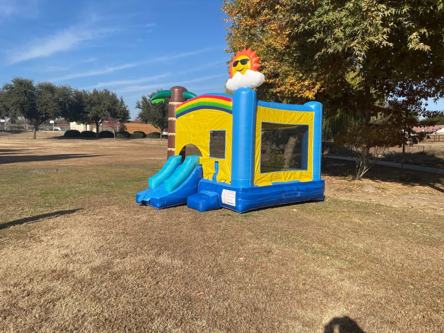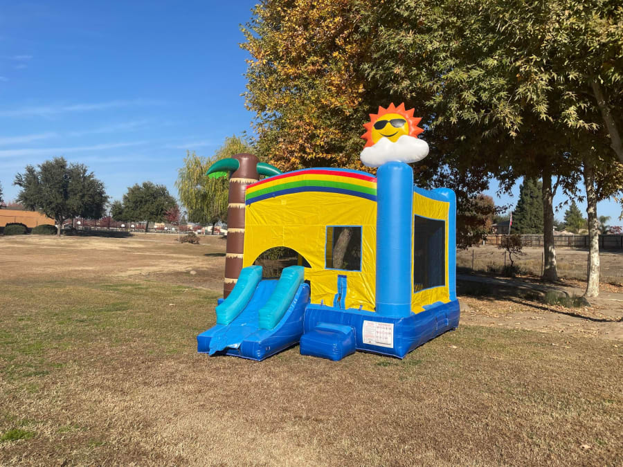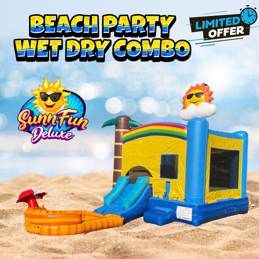 All of our Medium Duty wet/dry combos are suitable for rental use. These are made very well with reinforced stitching for all stress points. All of the load bearing portion have 15 ounce premium vinyl, this includes the jumping mattress, slide and entrance pad. The non load bearing portion is made of 13 ounce vinyl.
