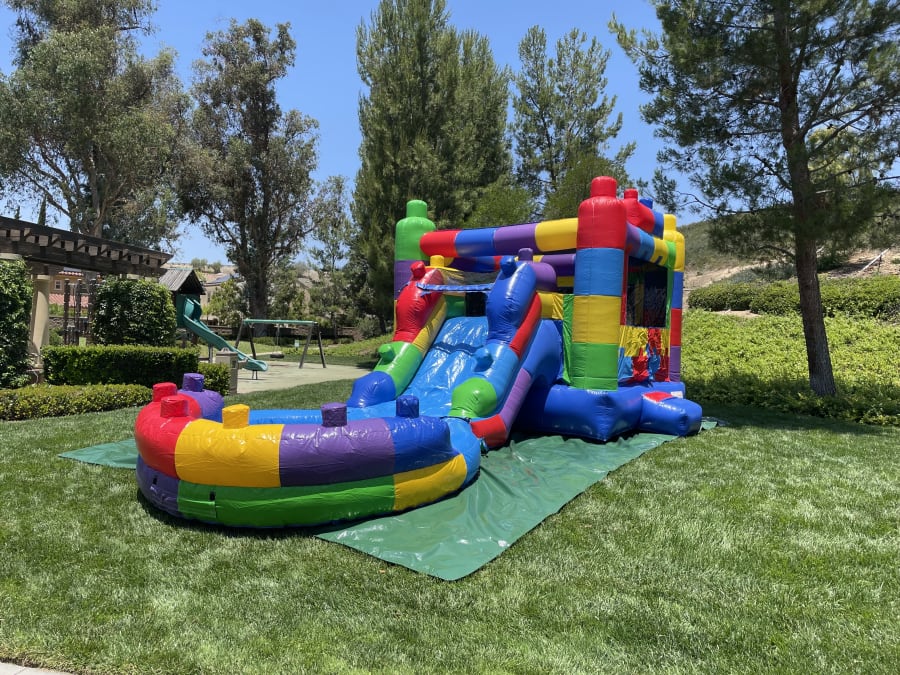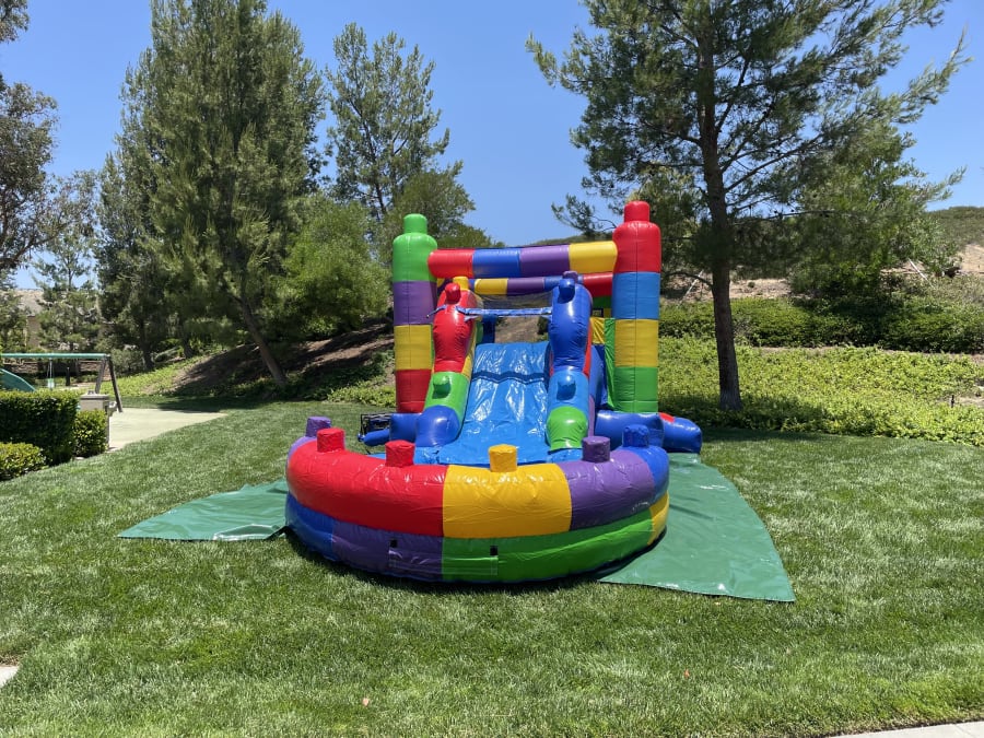 Always use ground stakes and the included tie down straps to secure the waterslide to the ground. Additional securing methods such as sandbags may be required depending on the set up area.