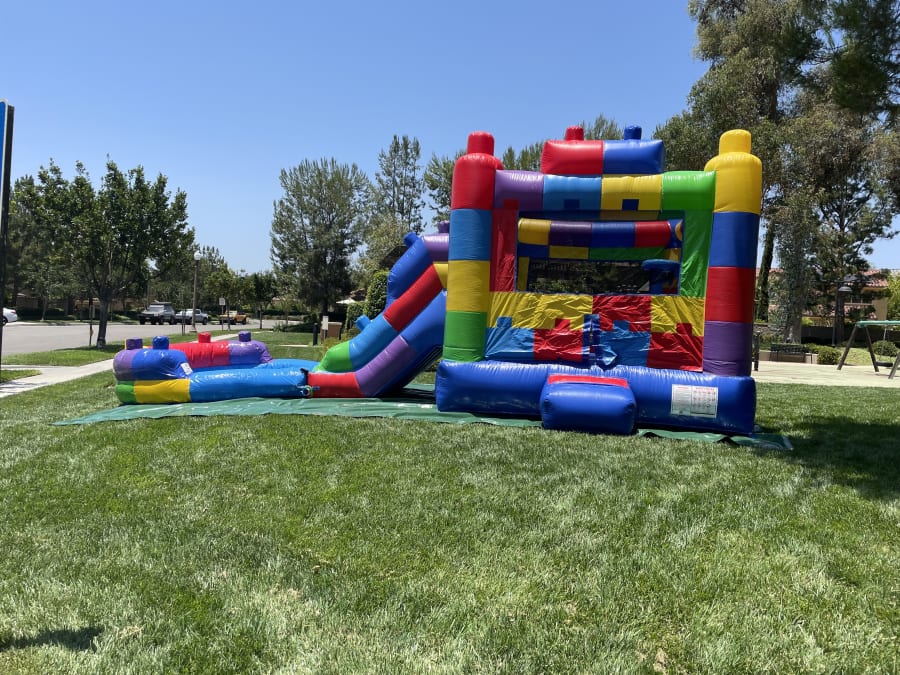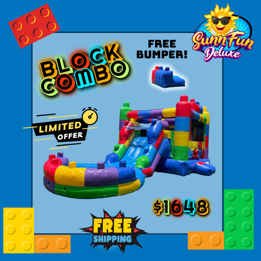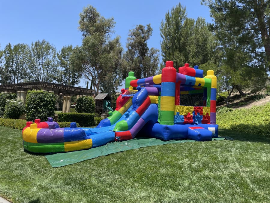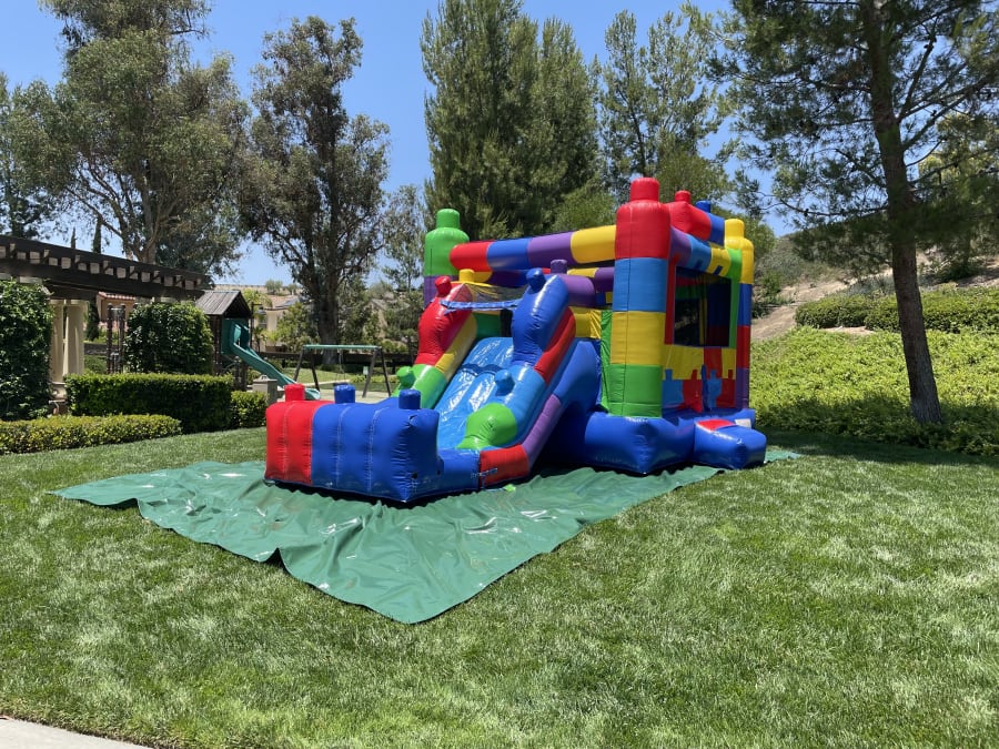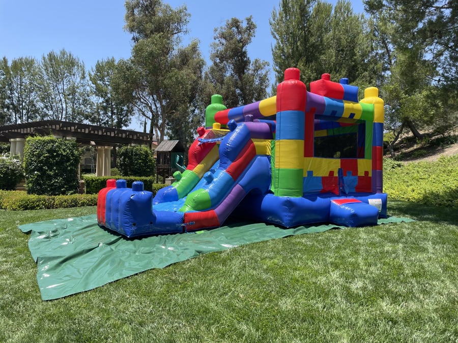 All of our Medium Duty wet/dry combos are suitable for rental use. These are made very well with reinforced stitching for all stress points. All of the load bearing portion have 15 ounce premium vinyl, this includes the jumping mattress, slide and entrance pad. The non load bearing portion is made of 10 ounce vinyl.