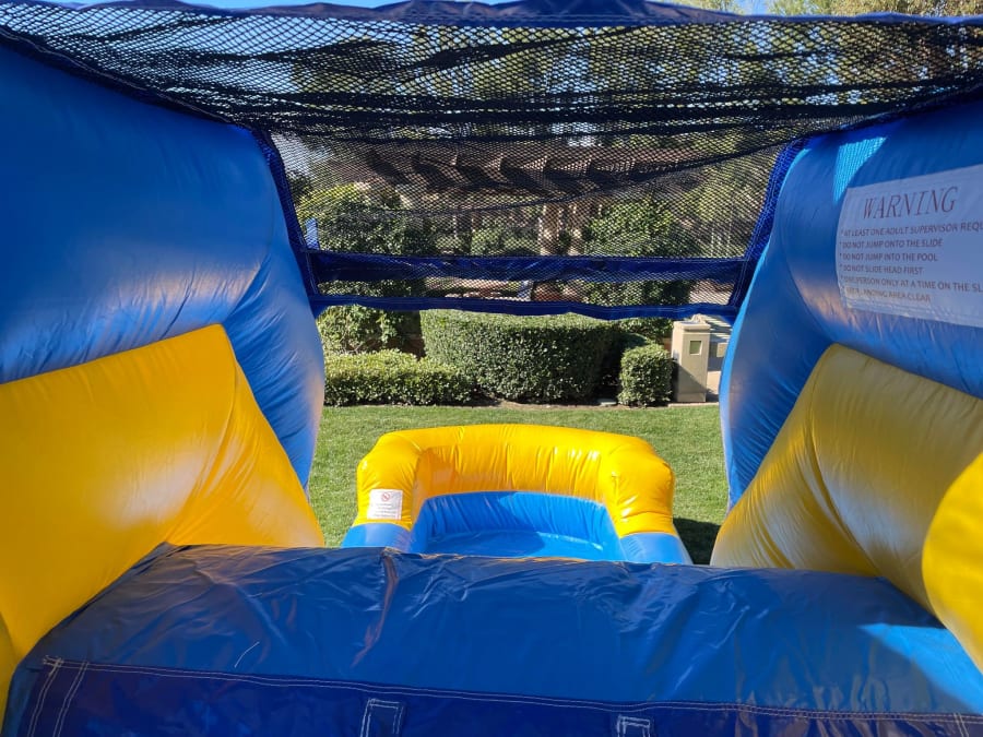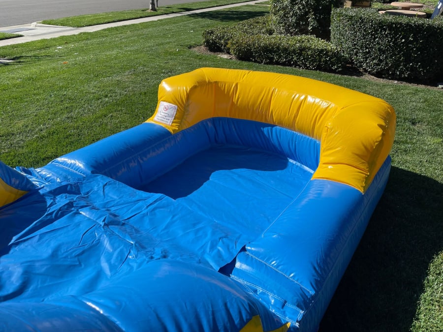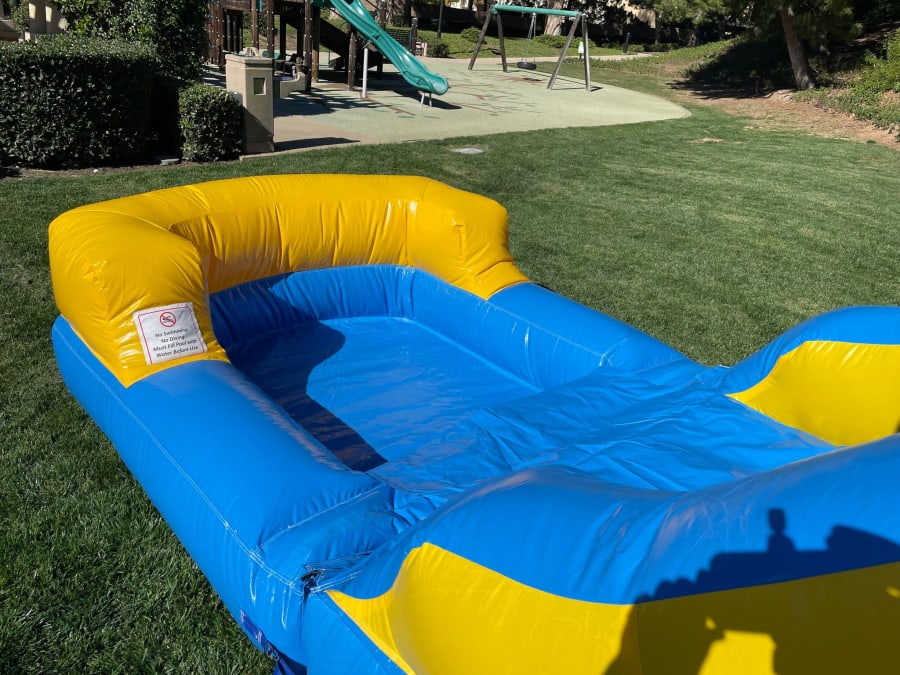 Always use ground stakes and the included tie down straps to secure the waterslide to the ground. Additional securing methods such as sandbags may be required depending on the set up area.