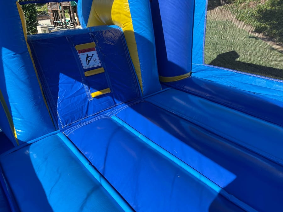 All of our Medium Duty wet/dry combos are suitable for rental use. These are made very well with reinforced stitching for all stress points. All of the load bearing portion have 15 ounce premium vinyl, this includes the jumping mattress, slide and entrance pad. The non load bearing portion is made of 10 ounce vinyl.